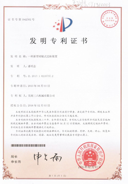 發(fā)明專利證書(shū)